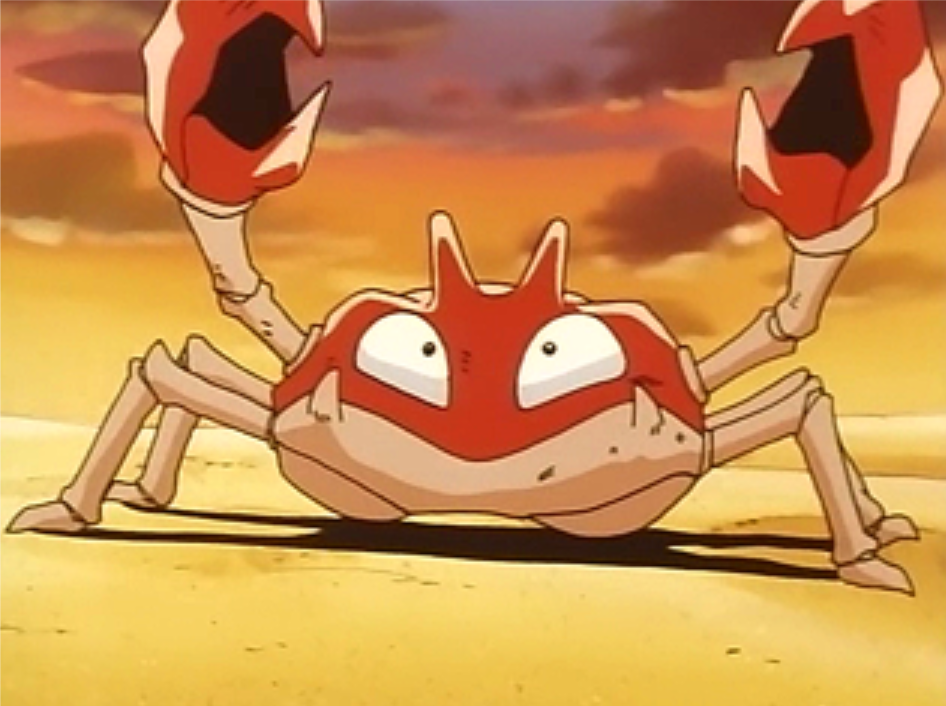 在正辉的灯塔附近的海滩上,小智遇到了一只很小的大钳蟹并且开了它的玩笑。大钳蟹挑战小智,小智用一根木棒打败了它并成功收服了它。在宝可梦联盟开幕,水之场地中,打头阵的大钳蟹意外地打败了对手多武的椰蛋树并进化。