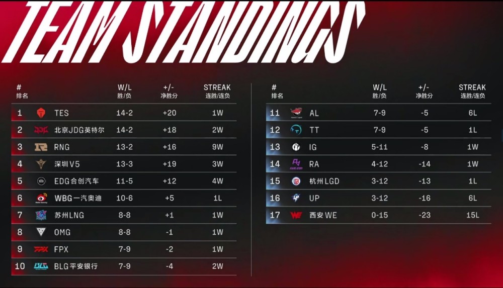 LPL夏季赛常规赛的比赛在昨天结束了倒数第二个比赛日的争夺,关于季后赛的席位悬念是全部揭晓了,TES战队也成功在收官战中横扫AL成功,拿到了常规赛第一的位置,BLG也是搭上了季后赛的末班车。