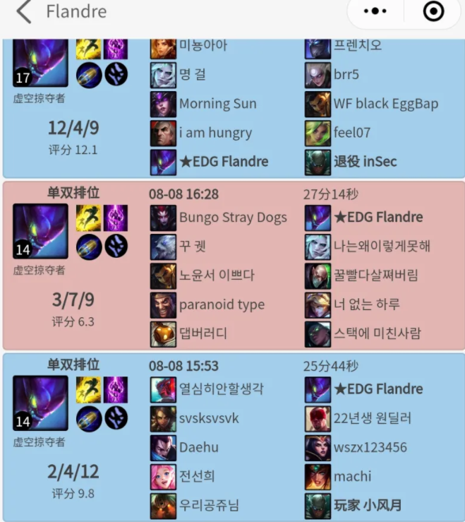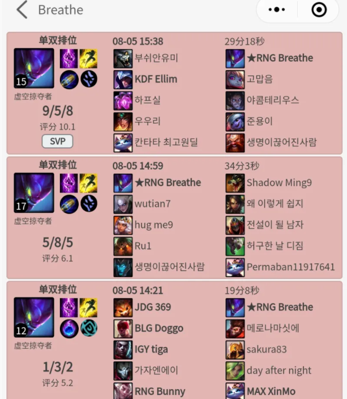 从双方上单的战绩上面来看,近期都沉迷于上单螳螂了,很有可能是已经在训练赛里面拿出来使用过,并且效果很好,不然不可能这么勤奋的去练习。这个玩法之前呼吸哥在排位里面,也曾展示出来过。在这一场游戏里面,他选出了上单的螳螂,在对线期打的非常的不错,有趣的是,这一场游戏里面,打的还是狮子狗。