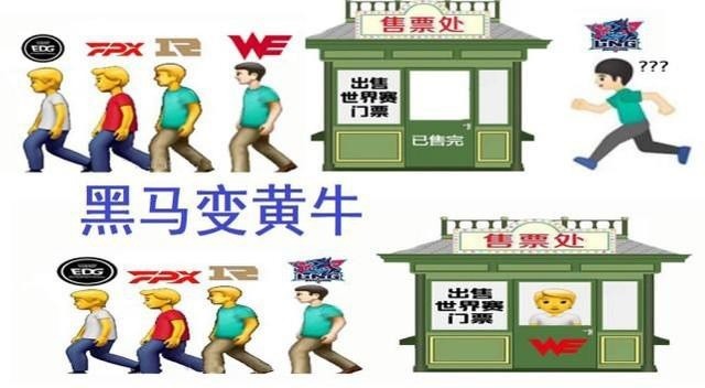 S7赛季,WE拿到了春季赛的冠军和全球总决赛的四强,自从那之后就一直走下坡路:后面能进个季后赛拿个名次,S11以为他们要再进世界赛,谁知道黑马变黄牛当了一波卖票小子。