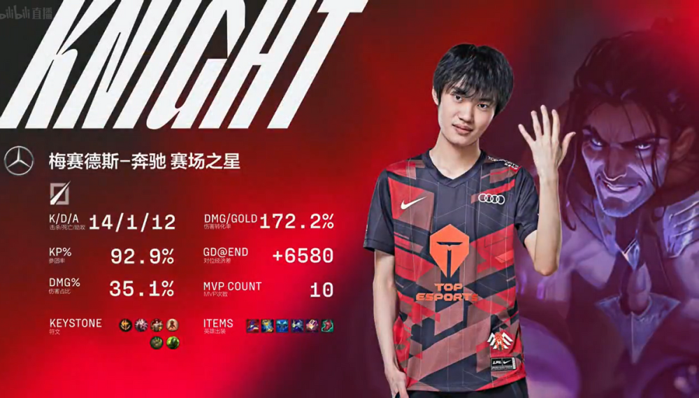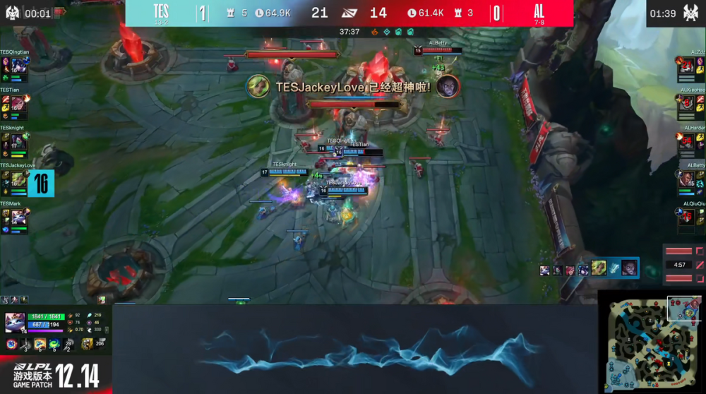 左手的塞拉斯输出全场最高,对AL的后排威胁很大,打出了14-1的华丽战绩拿到本局MVP。这场比赛完全就是TES的碾压局,在前期打出节奏后,AL一直都没能找到突破口。到了第二局,AL以抢带ban拿到了卢娜组合,阿水则选出泽丽和猫咪,虽然前期AL进攻势头很猛,但没能找到机会。反而是卢锡安一波上头,被小天惩戒回血反秀,帮助泽丽拿到双杀。虽然AL上路的纳尔操作拉满,在中路打出了一波团灭,但阿水后期的泽丽伤害爆炸,完美终结比赛。