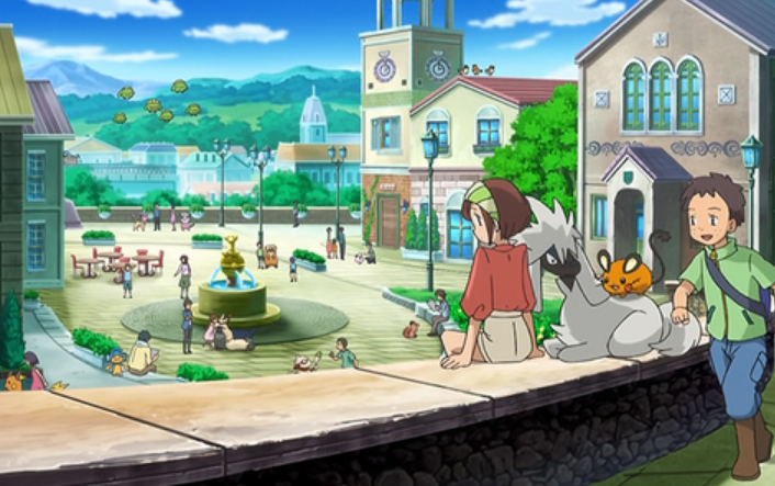 动画中——名水镇出现在《抵达卡洛斯地区!梦想与冒险的开始》的开头。