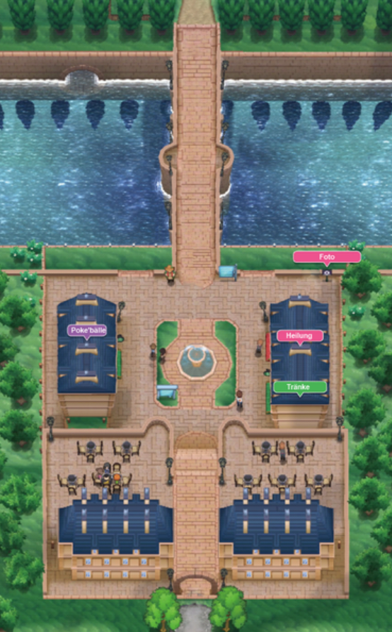 恢复屋/摄影点——恢复屋是镇中心东侧北边的房屋,像宝可梦中心一样回复宝可梦,不过没有宝可梦中心的其它功能;而在河边的摄影点可以召唤拍照大叔拍照,照片取景点位于名水镇主街道南侧。