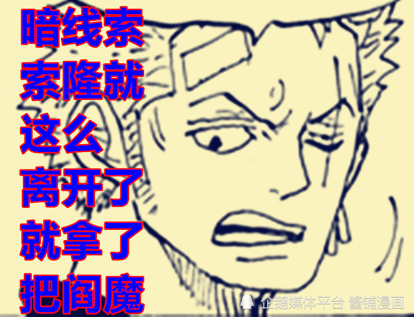 第二,以上这些,只是明显的线索。那么尾田给出的暗线索又是什么?那就是索隆的武器问题,索隆出发的时候并没有提到【二代鬼彻】,【黑刀秋水】,【天羽羽斩】的去向,【二代鬼彻】消息全无,【黑刀秋水】则继续供奉龙马,【天羽羽斩】是光月御田留给桃之助的。所以,索隆既然已经得到了【阎魔】,那么就等于正式舍弃了【二代鬼彻】与【黑刀秋水】,原本酱铺君以为会有【二代鬼彻】会代替【三代鬼彻】的桥段,结果没了下文。当然,情报也不是完整的,说不定离别之际会有索隆获取其他名刀的剧情在,一切还未可知,酱铺君的话也不能说得太满。
