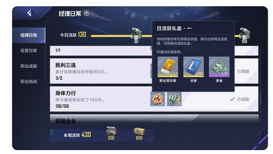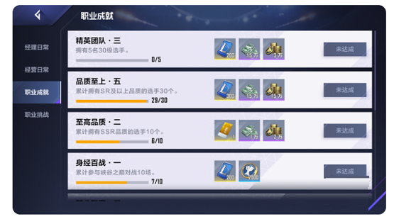 同时在比赛模式中,职业联赛每月最后一场焦点战还会掉落SSR卡碎片。在手游中的日常任务的活跃度宝箱中也可以开出职业签约券和点券,达成职业成就任务也可以获取职业签约券和点券。