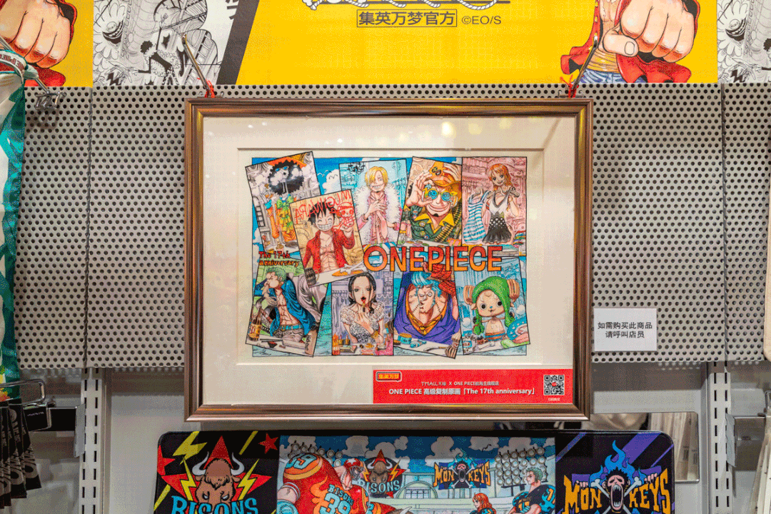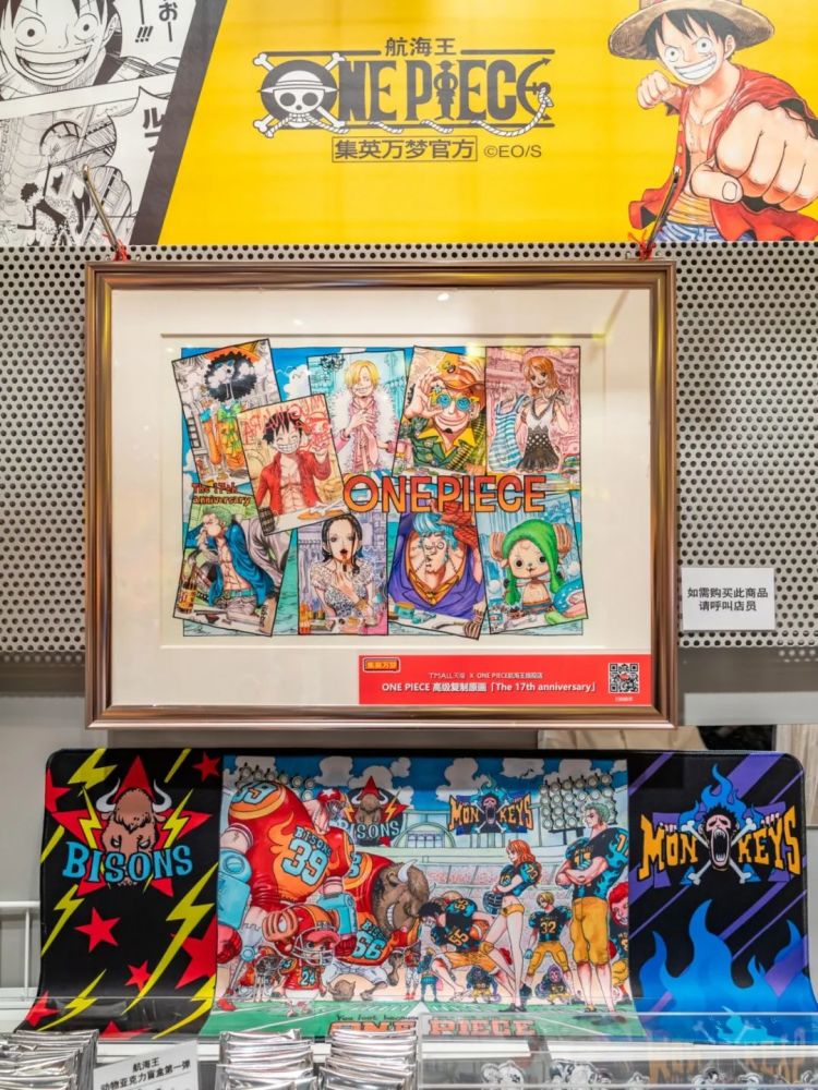 除了这个宝贝,还有四幅限量手绘画挂在墙上,就算不剁手也可以站那边来张合影,过一把逛海贼王漫展的瘾。