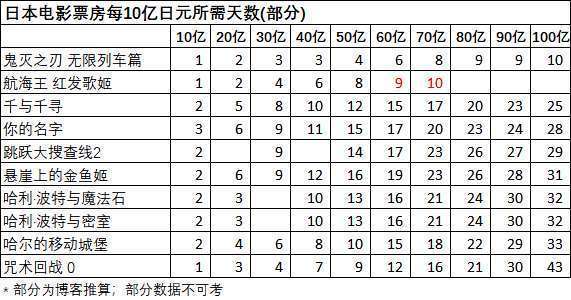 因此就有动漫迷制作了一张【日本动漫百亿票房】表格,可以看出大多数动漫在冲击百亿票房的时间。不得不说,鬼灭是真的强大,仅10天就拿下这个惊人的成绩。