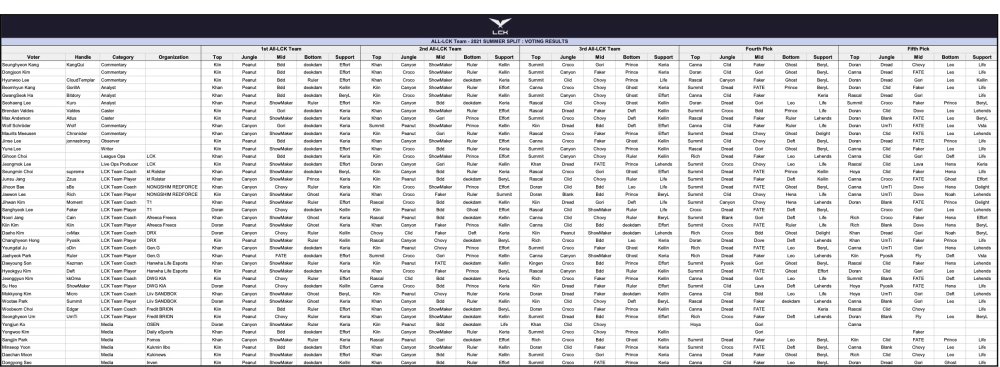 更何况LPL敢于公开选票的“专业人士”还是少数,对比一下隔壁LCK,直接公开所有投票者的投票,将整个投票过程暴露在公众的监督之下,才能防止有的人乱来。
