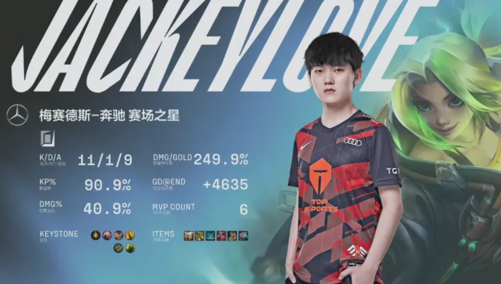 相信兄弟们都已经知道了,在上周滔搏成功以2-0的成绩带走AL之后一共发生了三件事情,前两件事情大家应该都比较熟悉,首先是滔搏顺利以常规赛第一名的成绩挺进季后赛。第三件事情则是BLG战队确认进军季后赛。而最后一件事情则罕有人知,其实在这场大捷之后,JackeyLove正式成为各位置分均伤害的第一名,而这也是他第五次获得该荣誉,值得一提的是,原IG三c,也就是Rookie、Shy哥和阿水竟然均在自己的位置上排名伤害第一!
