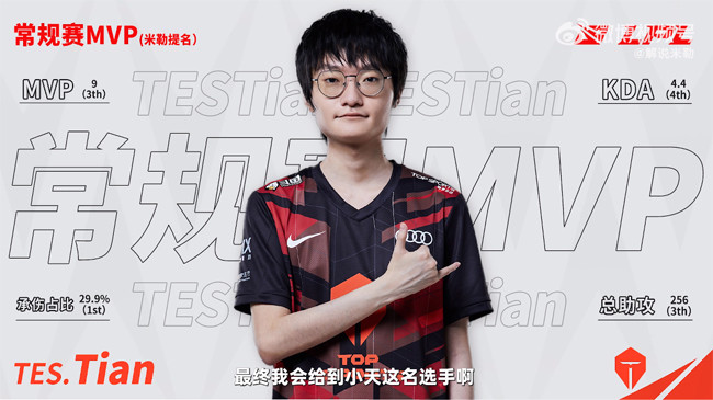 MVP我给到了Tian,因为我觉得Tian今年又有了很多突破吧,他在S9夺冠后这两年有很多的低谷,加上外界对他舆论上的一些非议,但我知道他是一个很有自己的目标,一直努力向上的选手,在战胜了所谓的‘心魔’和外界的非议之后,他能够保持这份初心和自信,在今年完成了蜕变,在我心里Tian今年又进化了,他既不是S9的高天亮,也不是低迷期的高天亮,而是一个全新的Tian,而且看TES夏季赛的比赛,他完完全全还是一个节奏型打野,我觉得这种打野是比较的无私,比较的团队性的,这也是TES今年能获得这么好的成绩的原因吧。”