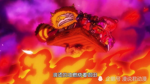 御田和大蛇、凯多再约定,得到了获救的条件,进入油锅一小时。大蛇凯多完全是没有信用的,御田也知道这一点,他只是为了给自己的武士争取活命的机会。御田双手高举麾下的九位武士,等待着一线生机。