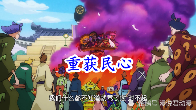 海贼王动画974集已经更新,在这一集,民众解开了对御田的误会,知道御田在保护他们。但其实,这些人的悔悟对御田本人来说没多大意义,因为他的死亡已经注定。但是,对光月一族的意义却是巨大的,那就是民心。