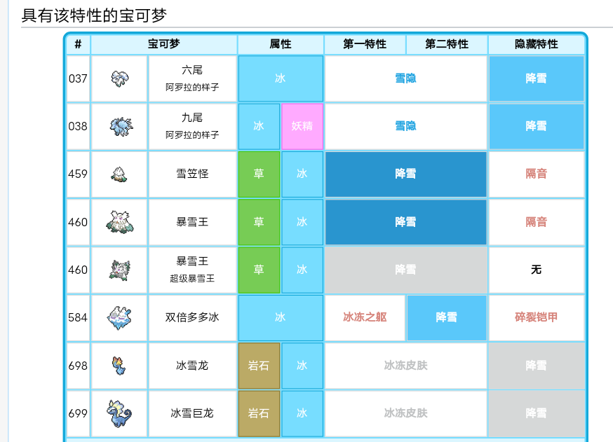 至于如果构筑雪天队伍,除了天气手,自然是要选择配合天气特性的宝可梦啦。