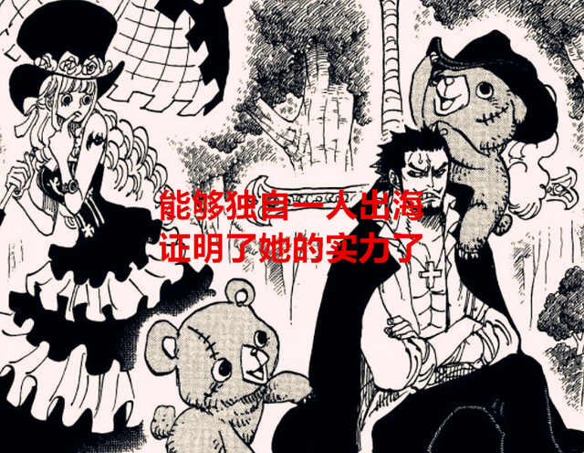 其实一开始,佩罗娜说要自己去寻找莫利亚的时候,我就发现她是可以独立支撑,不需要依靠别人的海贼了,一个人去找莫利亚,佩罗娜的方向感很强,不像索隆会迷路,其次要么她能随时把身体幽灵化,要么她兼备很强的航海能力,或者把一个很强的海贼团干趴,然后让他们心甘情愿载她去。她能一个人去找莫利亚,想想当年雷利一个人去找路飞的时候,经过的无风带地方,直接就秒杀了海王类,虽然佩罗娜实力可能没那么强,但至少她的果实能够让她安全。