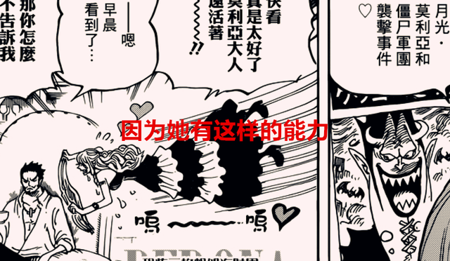 那么现在佩罗娜去营救莫利亚,有这么一种可能性,就是佩罗娜趁着黑胡子及其手下干部们外出,救出莫利亚,毕竟以佩罗娜的能力,非常适用于突围。有人可能会怀疑,就佩罗娜那点实力,不可能囊中取物啊,但是佩罗娜的能力可以让人处于消极的状态,一旦中了佩罗娜的技能,都会跪地求饶,她完全可以跟莫利亚里应外合,直接逃离黑胡子的蜂巢岛。佩罗娜是有飞行能力的人,如果她愿意的话,没人可以拦住她。