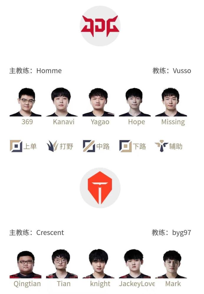 那么通过这些团队数据我们可以得出一个结论,JDG需要更多围绕上野去布置BP以及战术,而TES则需要更多围绕双C去展开,不过在比赛中,有时候又需要有人去牺牲,比如369为了让Kanavi的前期节奏更好,可能会选择出坦克,让他更多去下路,保证自己以及下路的发育,而TES可能更多需要牺牲的是小天,帮助下路打出优势,从而辐射到上路,不过在今日的首发名单中,我们也看到了TES的一些改变,他们将首发qingtian而不是wayward,说实话,在决赛这个关键时刻,敢做出这样的尝试,真的勇的。