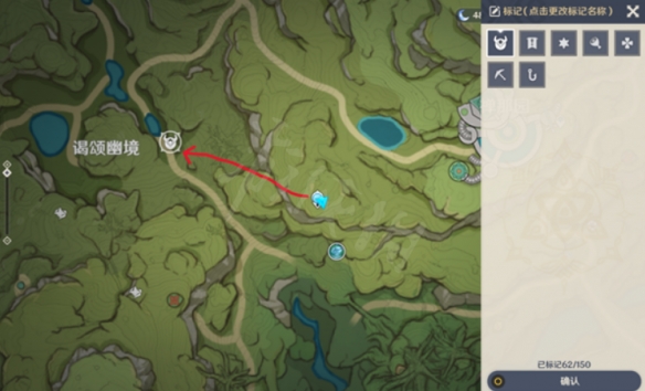 从七天神像往西走接取任务,由于我提前在不知情的情况下接取了,图中拿标点替代