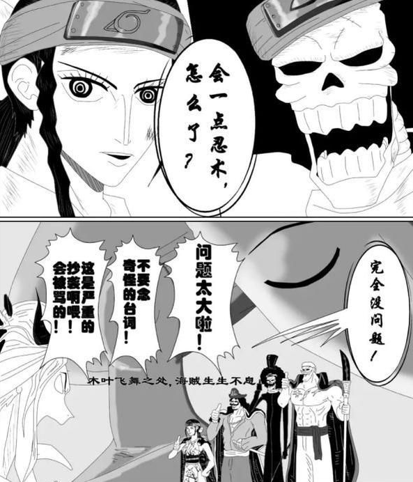 在这种状态下,尾田更多是恶搞《火影》元素,比如忍者雷藏第一次登场后那种令人难以直视的外貌,在当时就让火影迷们非常气愤,同人图这般借鉴《火影》等于在称赞岸本的设计巧妙,虽然现在硝烟味没那么浓厚,依然不是尾田感兴趣的选项。分享这些同人画作也只是让海米和火影米们共同图个乐,毕竟我相信还是不少小伙伴与我一样,是同时喜欢着这两部作品的。