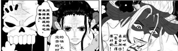 剧情一开始,是由玛利亚和罗宾、布鲁克的对话展开的,在固有印象中,罗宾和布鲁克虽然不属于草帽一伙的弱小三人组,但实力也仅是中规中矩,特别是罗宾,并没有太多可期待性。玛利亚在擒住山治时,就在没有啥准备的条件下,让山治将罗宾叫过来,显示 出了十足的轻蔑。