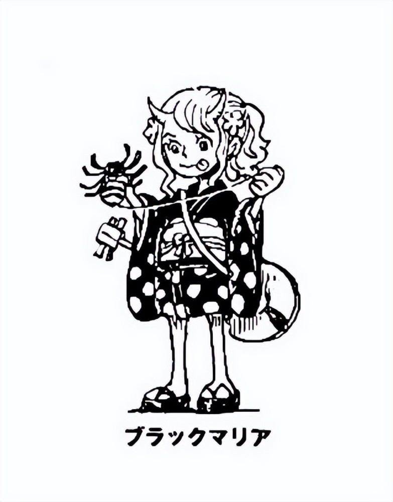 黑玛利亚是六子之一,鬼岛大战中的战斗表现不俗,靠着山治的弱点轻松将其制服,虽然败于罗宾,但其实力还是有目共睹的。年少时期的黑玛利亚穿着和之国的服饰,身后背着三弦琴,说明黑玛利亚是和之国的本地人。值得一提的是,小时候的她清纯可爱,长大后也是颜值爆表。
