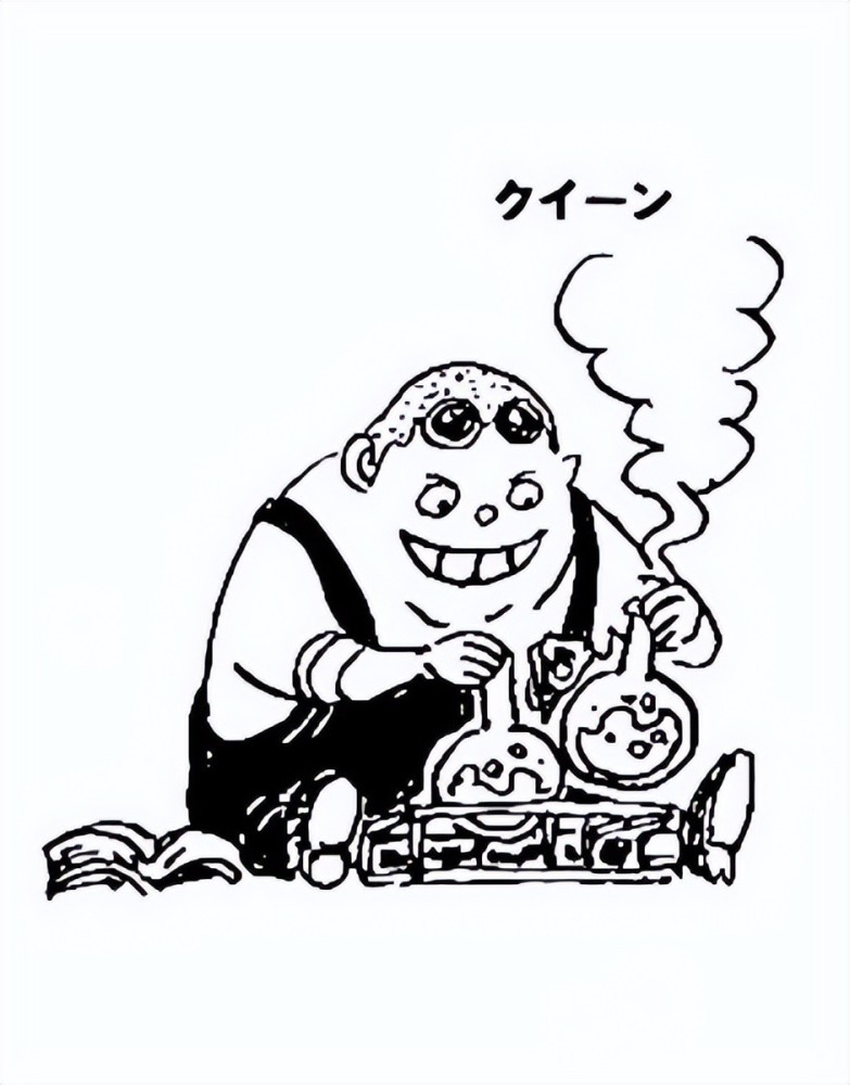 奎因在凯多团中是与烬齐名的人物,元老级骨干,奎因既是凯多团中的战斗人员,也是科研人员,拥有非常聪明的头脑,不过他所研发出的药物都是极其“反人类”的,这点与乔巴形成鲜明对比。少年时期的奎因就比较肥胖,手上拿着化学器械,看得出来家境比较阔绰,难怪性格一直嚣张跋扈。