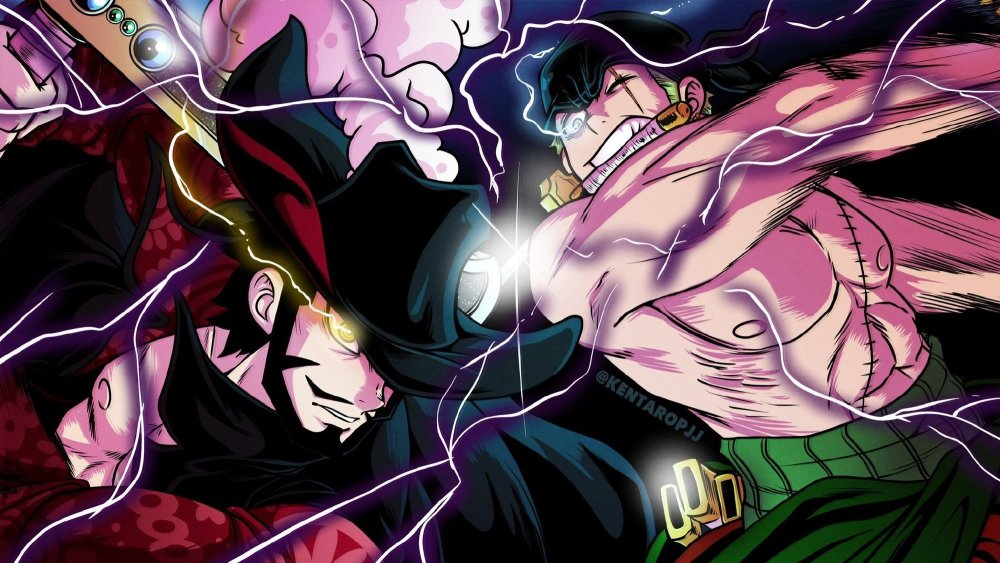 不过索隆自从加入路飞旗下的草帽团,就再也不去当什么“海贼猎人”了,毕竟他自己就是海贼,就算击败其他海贼也不会去找海军领赏。师傅徒弟的称号如此相近,不用多说这必然是尾田老师故意为之的,从某种意义上来说,这也算是索隆对前辈的“致敬”。