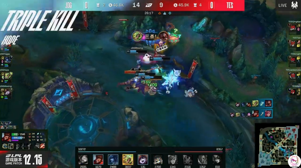 26分钟JDG一波1换5团灭TES