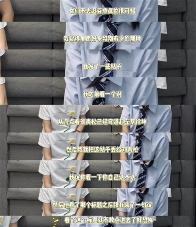 不过,踩组就不一样了,大部分内容都是嗑cp,这位工作人员还各种劝导大家去看踩组:你们不看真的很可惜,里面有很多有才的帖子。我之前看到一个说,从几点看刘青松已经“弯道超车”蔡徐坤,然后我就把这个帖子丢给刘青松,问他敢不敢认。刘青松说,看到这个标题他都不敢点进去。