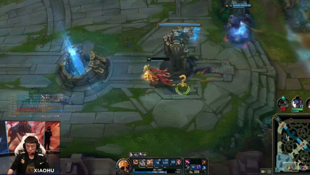本局比赛里面,小虎几波团战中都没有打出令人印象深刻的大招伤害,全程刮痧,前期非常肥的一个发条,后期没用了,被团灭的那一波打塞拉斯都如同刮痧。