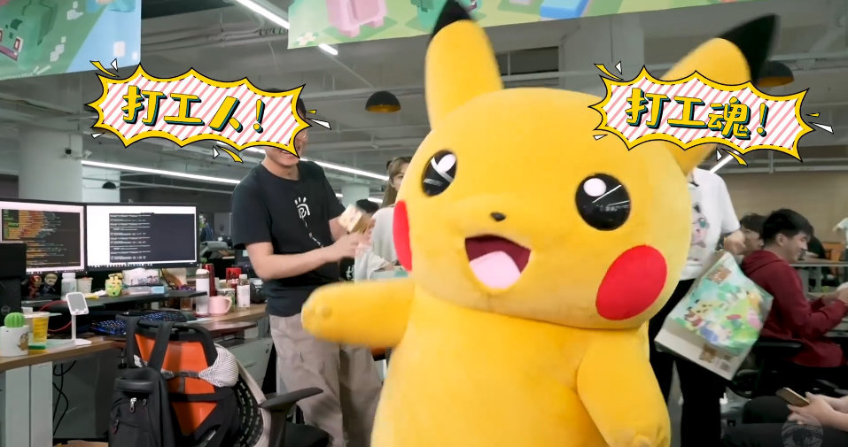大大的身子,软萌可爱的外表,皮卡丘走到哪里,都是回头率最高的。有意思的是,皮卡丘一现身,和同事们亲密互动,拍照、握手手等等,十分欢乐!