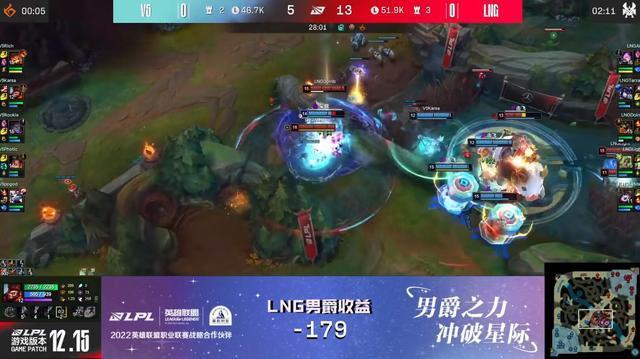23分钟,LNG顺利收下听牌火龙,V5还想趁LNG人员没有集结的机会强打一波,但先手未果被Light的泽丽拉扯麻了,LNG取得一波0换3的完胜收下大龙,基本奠定胜局。