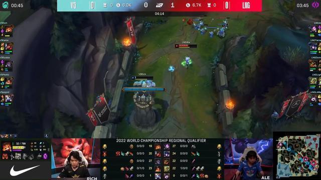 2022年9月3日,LPL冒泡赛第一轮LNG对阵V5,两队也算是恩怨局了,在此前的LPL夏季赛季后赛阶段正是LNG完成下克上将V5淘汰出局,如今两队再次在冒泡赛阶段相遇,两队的胜者将和RNG争夺最后一个S12全球总决赛LPL赛区的参赛资格。