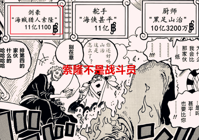 如其研究草帽团的悬赏,不如咱们来看一下草帽团的内部架构调整,我相信很多人都没有留意一件事,这一次尾田不仅仅是给出了草帽团的悬赏,更重要的是,他还把每一个人的定位都标出来了,娜美是航海士,罗宾是考古学家,乔巴是医生,甚平是舵手,山治是厨子,而索隆是剑豪,这是一个细节啊,我们根据尾田以往对草帽团的个人设定,索隆应该是战斗员才对,可如今索隆却变成了剑豪。