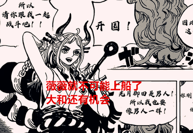 这意味着什么?这就是说,草帽团还欠缺一个战斗员的位置,所以第十人将会在下一个篇章揭晓,但如此同时,也证明了一件事,薇薇不太可能上船了,因为薇薇不算是战斗员,她属于智囊团的人,所以可以排除薇薇会上船了,那么最后一个人会是谁?其实还得是大和本身,虽说大和在和之国篇没有上船,但她的身份也确实符合战斗员的设定,她是幻兽种,船上要是有这样的角色,肯定是如虎添翼,但尾田会如何安排大和再度上船呢?会不会跟乌索普是同一个套路?