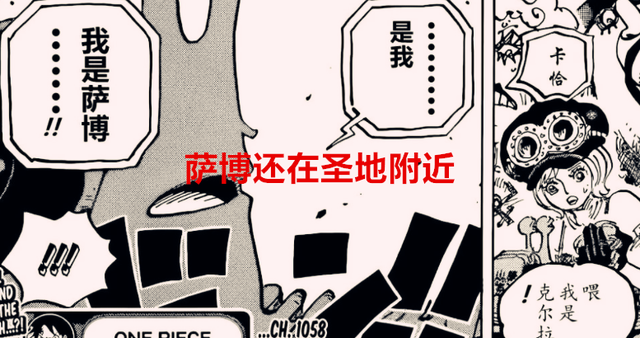 此外,1058话漫画中,还有一件事,在最后一页中,萨博突然打了电话回去革命军总部,这是一个很突发的举动,明知道全世界的人都在找萨博,为何萨博会这么冒险打电话回总部?而且当萨博打电话的时候,海军一下子就拦截到了萨博的电话,这说明什么?我们都知道,海军能够这么快窃听到萨博的电话,除非萨博就在圣地附近,否则海军不可能这么快有行动的,因为窃听电话本身就有一定的距离限制,如果超过了窃听的范围,海军是不可能拦截到萨博的电话。
