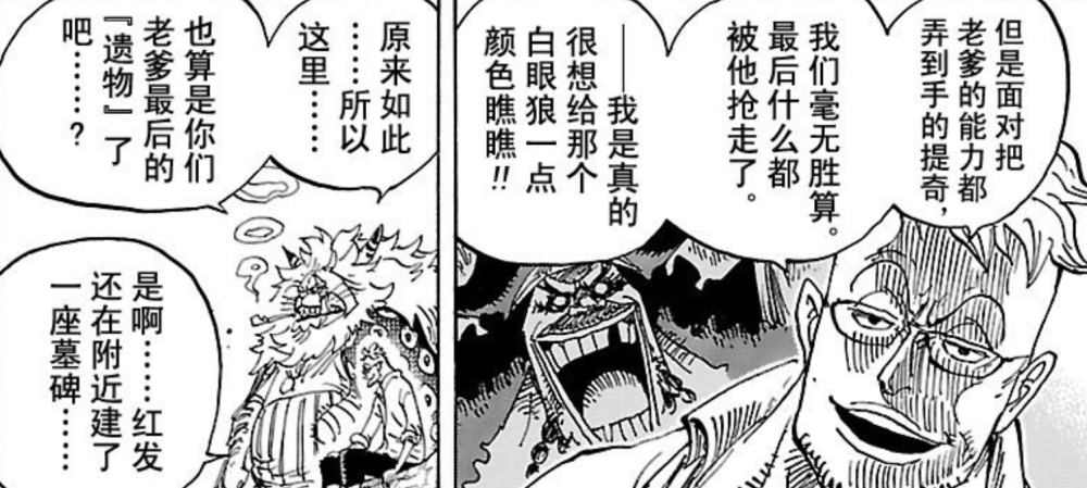 同时马尔科会告诉路飞,1年前的【黑胡子团VS残白胡子团】结束后,黑胡子拿走了老爹白胡子的遗产,其中就包含路标历史正文,也是路飞寻找的最后一块石头。