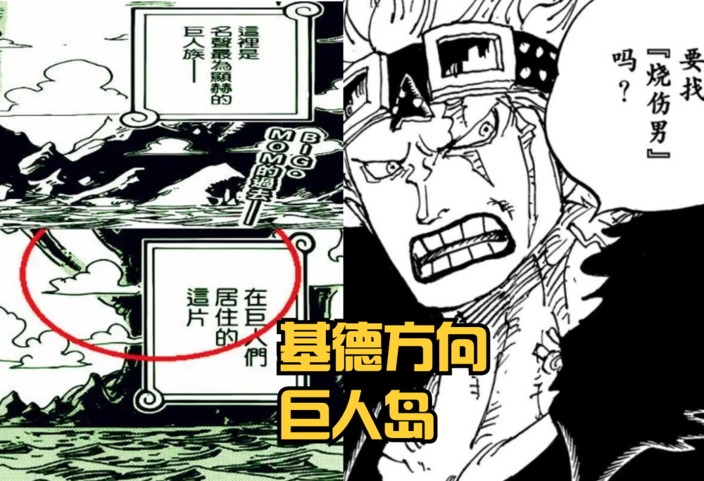 1、基德前往巨人岛,那里应该有关于【烧伤男】的信息。目前已知的信息最有可能的角色是【贾巴】,他也是知晓OP秘宝且唯一一位拉夫德鲁的具体路标的人。