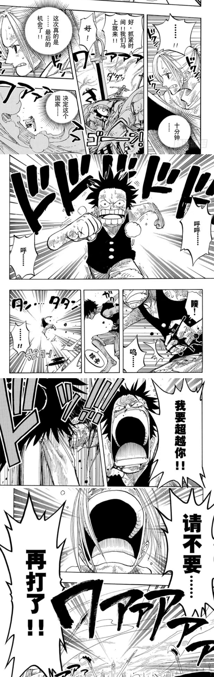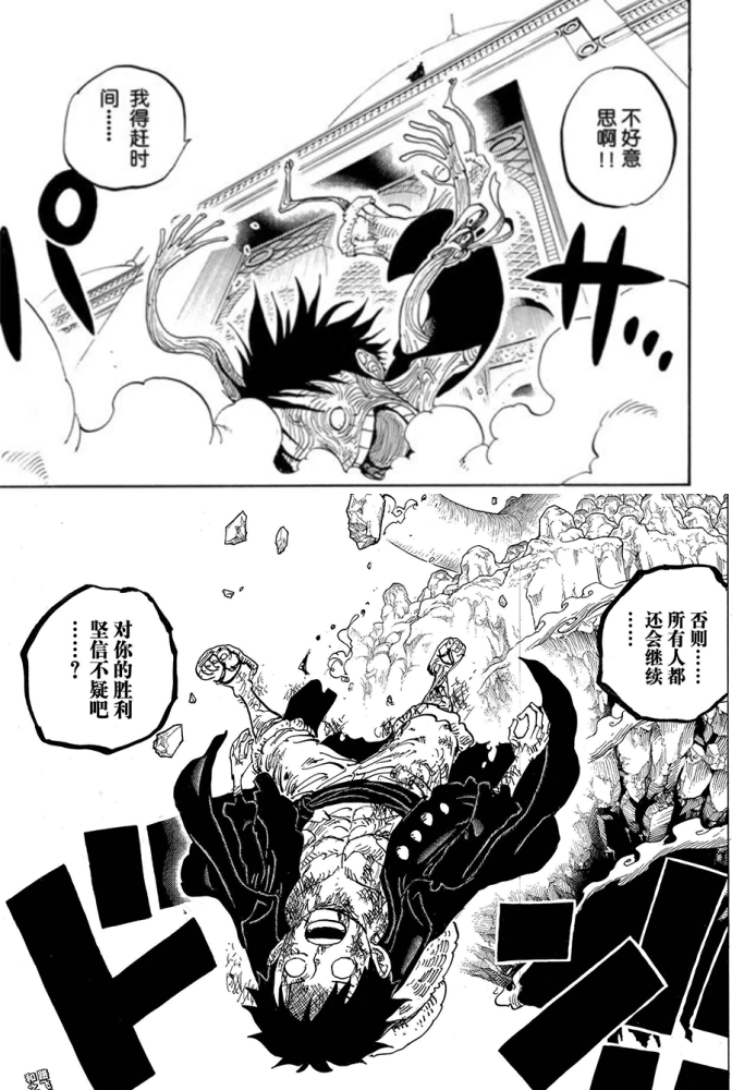 ——国家毁灭在即,路飞再次振作豁出性命追赶,终于在死战中“超越”敌人。而国家的命运,还得由本国人主导,最终迎来和平(降雨/黎明)。