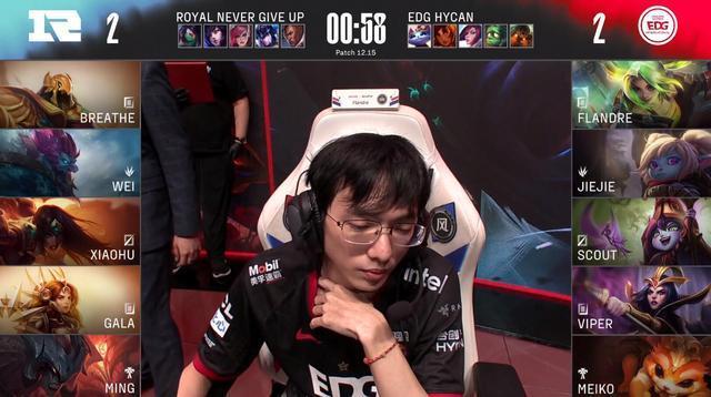 2022年9月2日,S12区域选拔赛LPL赛区第一轮,EDG对阵RNG,前四场比赛双方战成2比2平,EDG在启用Jiejie后连下两城,圣枪哥的发挥成为了EDG在绝境中将比赛拖入决胜局的关键,个人也是连续两场比赛收获MVP。