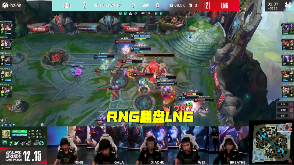 RNG和LNG的这场比赛,观众看得心惊肉跳,RNG上来先下两城,不过第三局和第四局出现大量失误,LNG乘胜追击连扳两局。决胜局前期LNG凭借完美的运营拿到不错的优势,此时大家都以为RNG会再次被让二追三钉上耻辱柱,阿乐再次迷路给了机会,Breathe不愿当卖票小子,用剑姬统治带领队伍终结了比赛,最终RNG拿到最后一张晋级门票。