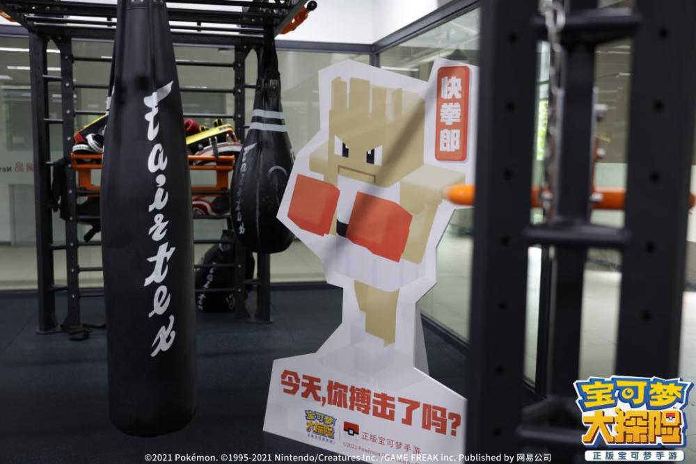 如果有玩家误入了食堂或是健身房,不妨花点心思找找是否有开发组留在这里的彩蛋。各种宝可梦立牌放置在健身器材旁,怪力举铁、快拳郎打拳,督促大家一起运动,健康生活就从打卡网易健身房开始吧!