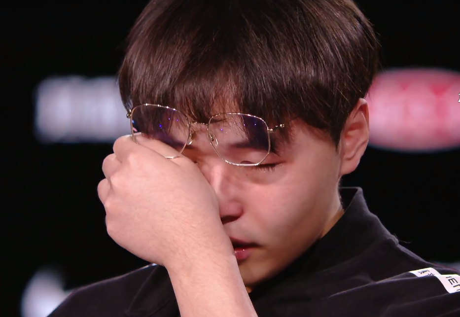 他一度情绪失控,泣不成声,缓和几分钟后,终于平静下来,他表示:很庆幸这是你第一次进世界赛,但相信这不是你最后一次进世界赛。