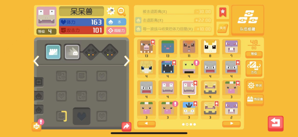 一般近战宝可梦可以红蓝槽位比为3:6或者4:5,而远程则相反。当然相信自己操作的小伙伴可以选择更加极端一点的比例,比如2:7甚至1:8。