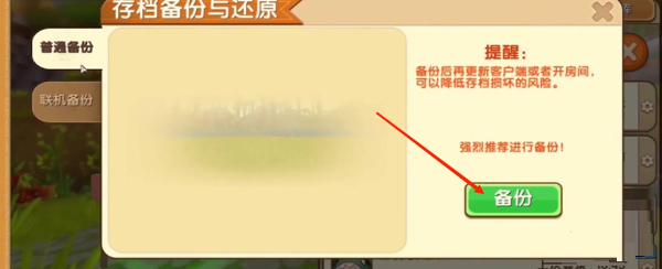 4、点击“备份”。