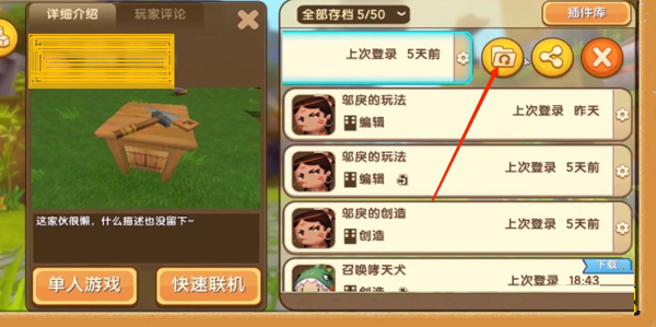 1、迷你世界每一个地图都是自动存档,但是有时会因点错造成无法恢复,这时需要备份存档的帮助。