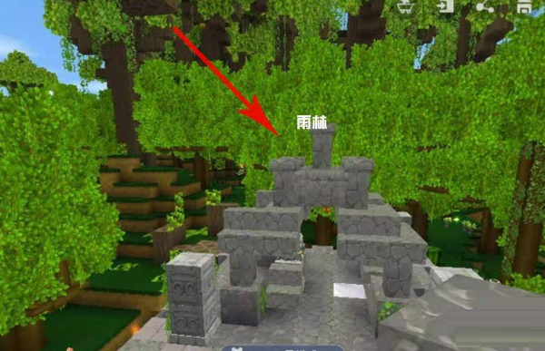 1、首先需要打开迷你世界手游,打开后到达雨林地图点击神庙。