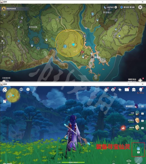 首先来到河陀河谷如图传送点位置,按“寻宝仙灵”键开启寻宝任务。地图上会自动显示出外溢能量点和挖掘点。