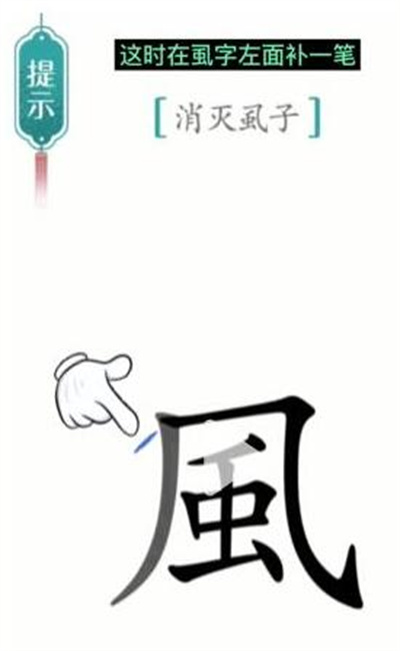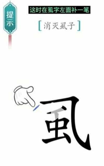 1、进入游戏之后,我们需要先等虱字先跳两下,然后在它的左边补一笔;