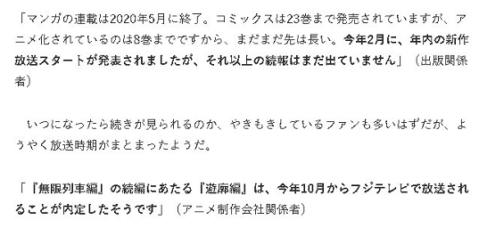 近日,日媒周刊女性PRIME在询问电视台关于《鬼灭之刃》第二季遊郭編是否在今年10月份开播的时候,官方对此不予置评,但也没有否认。(另外,富士电视台已经获得《鬼灭》第二期的播放权)