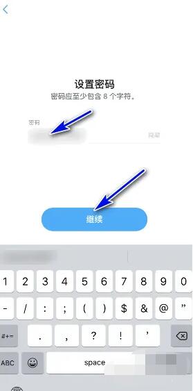 5、然后我们设置自己的密码,这里需要开启自己的流量,关闭WiFi,只有移动网络才能完成密码设置,点击继续。